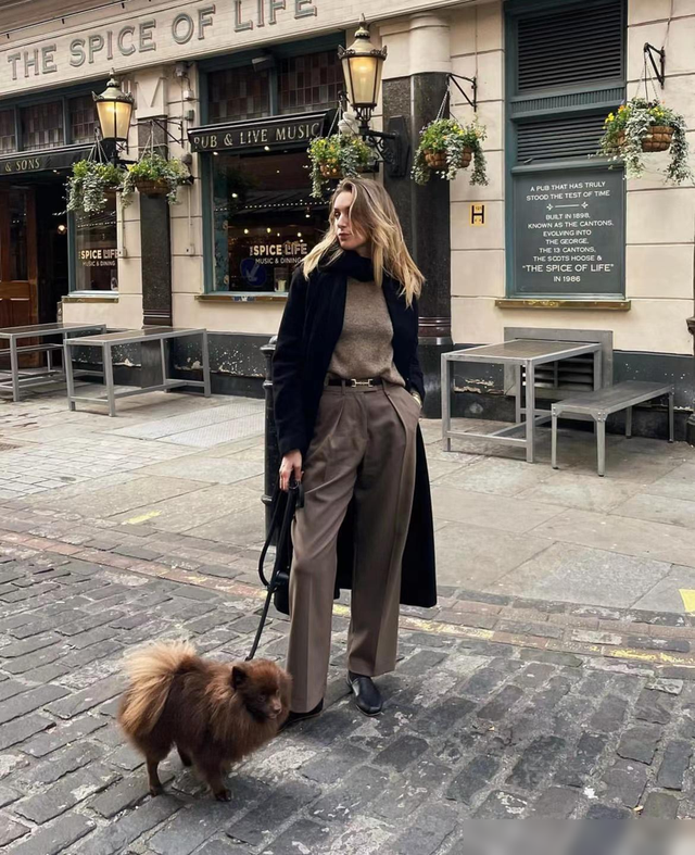 毛衣与法式短靴之间的结合,其实当下也是很流行的,而且这样穿着既时尚又不会觉得冷;