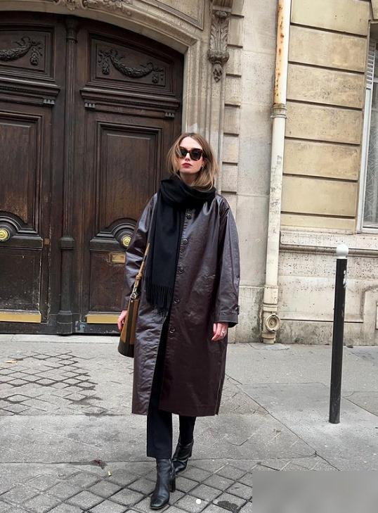 法式短靴与大衣的组合,可以在冬季中出众且不失魅力;